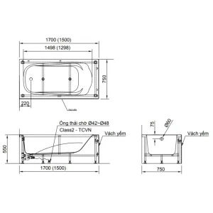 - Bồn tắm xả trái: FBV-1502SL